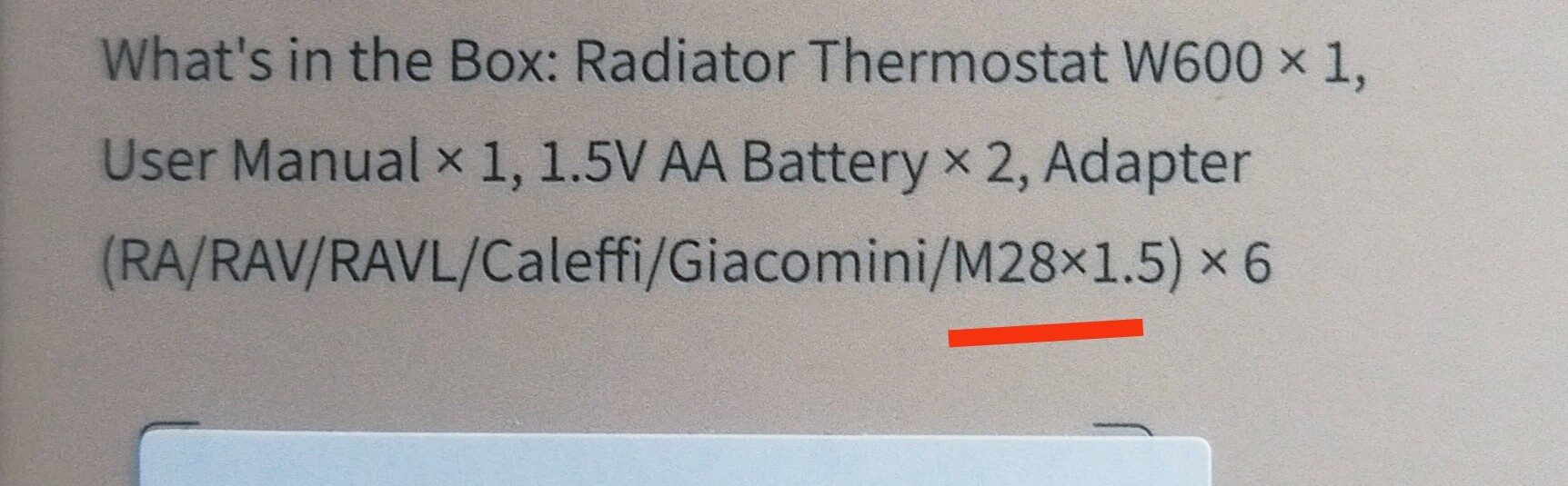 The new W600 radiator thermostat is described as being compatible with M28 x 1.5mm valves. My radiators have valves that take the E1 thermostat (without adaptors) but I think the E1 is describled as compatible with M30 x 1.5mm valves. Does this mean the W600 has a different thread and won’t fit as a direct replacement for an E1, or is one of the specifactions perhaps wrong?