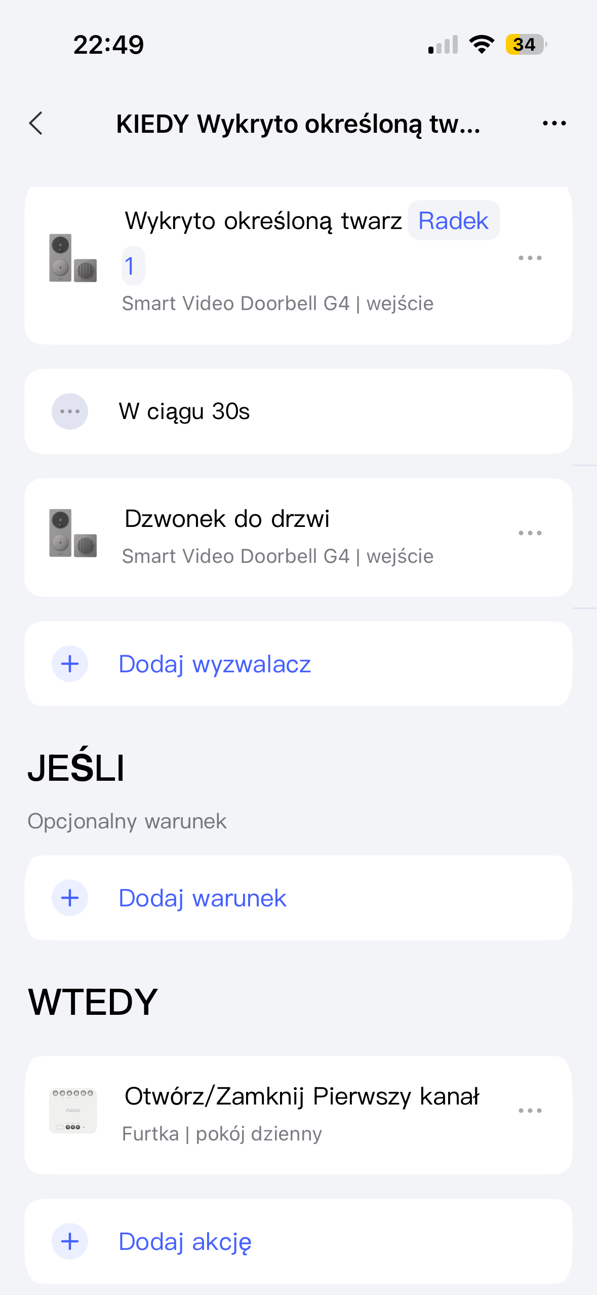 Na wszystkie sposoby sprawdzałem z usuwaniem i dodawanie włącznie , prosta testowa jeśli rozpoznasz twarz Radek zapal światło oczywiście Aqara żarówka i nic cisza , w logach czy w dzienniku mnie rozpoznaje ale nie ma żadnej reakcji i na Aqara g4 i g5 pro PoE , wcześniej fajnie to działało rozpoznawało twarz i furteczke sobie otwierałem . A czy ukogos to działa czy coś mam skopane , dodam ze wszystko sparowane jest też z HomeKit ale ta automatyzacja tylko w Aqara .